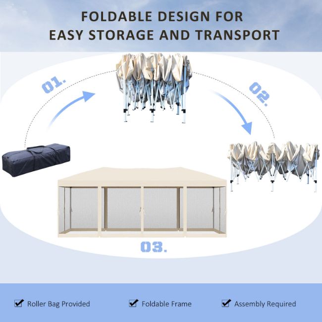 - Grab your favourite drink and enjoy the shade of freedom with this Outsunny 3m x 6m gazebo with sides. The sturdy frame adds a durable place for you to relax in the shade. This garden shelter is perfect for any occasion such as family gatherings, picnics, camping or tailgates. The mesh sidewalls make it great for keeping comfortable in, and you can enjoy the outdoors even if the sun goes down. Save time to set up, you will have more time to enjoy yourself with stylish Outsunny pop up gazebo.