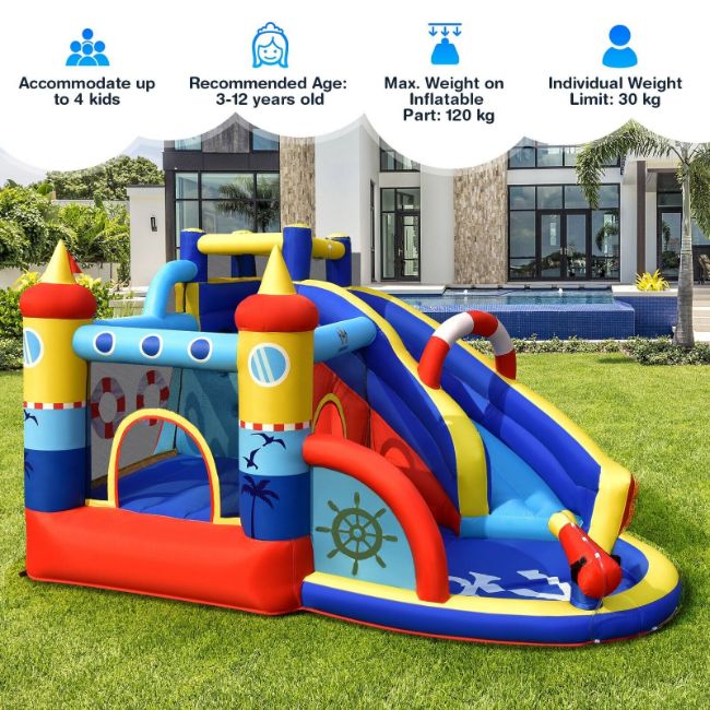 Integrate a water slide, a bounce house, a splash pool and a climb wall