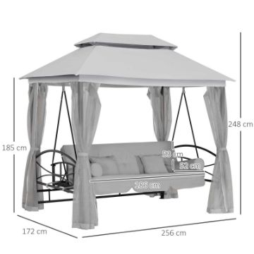 • • 3-IN-1 DESIGN: Dual use design to convert from a 3 seater garden swing to a single garden swing bed. The design is also a bed, a bench, and a gazebo.