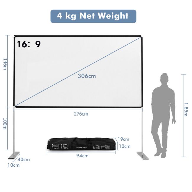 Package Includes: 1 x Projection Screen, 1 x Carrying Bag, 2 x Base, 4 x Ground