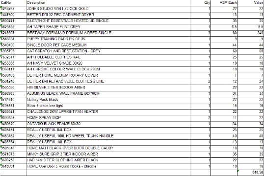 EAMA have received these directly from Argos so you can rest assured that nothing has ben removed from the pallets prior to listing them - EAMA have over 300 pallets in stock and therefore a pallet will be chosen at random from the homeware category.