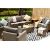 Comprised of a three-seater sofa, a two-seater sofa, two armchairs, a stool, and a toughened glass-topped coffee table.