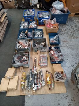 We currently have available as a job lot a vast amount of New Genuine Oe Derbi Scooter Parts ..parts available in this order are: Wheels..Exhausts..Door Mirrors..Shock Absorbers..Rear Lamps..Headlamps..Brakes. Clocks..Switches..Indicator lamps..Electrical items to name but a few..see all pictures attached..