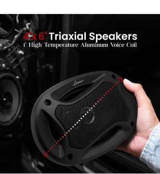 When your speakers aren't powerful enough, upgrade to the Lanzar MAX! These 6.9” 3 Way Triaxial Speakers provides up to 600 watts of two-way sound, thanks to the robust 10 oz. magnet structure. The high-quality injection cones and non-fatiguing butyl rubber surrounds provide a strong foundation, and this speaker pair achieves a fuller range of sound because it's equipped with 0.5” titanium neo-tweeter and 1” high-temperature aluminum voice coils.