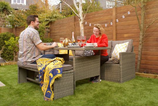 Consists of an L-shaped corner sofa and a bench, offering ample seating for your garden parties.