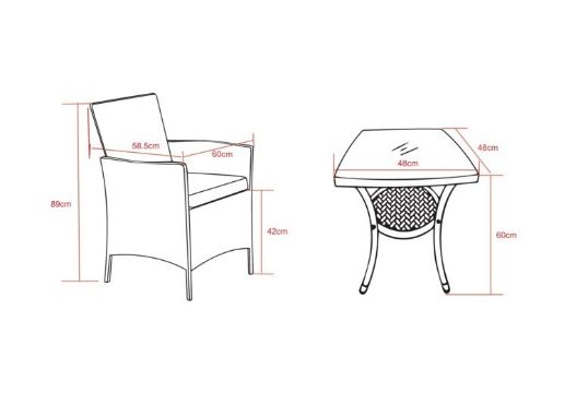 Includes two chairs and a tea table with a 5mm clear tempered toughened glass top.