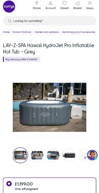 • Lay-Z-Spa Hawaii HydroJet Pro Inflatable Hot Tub.