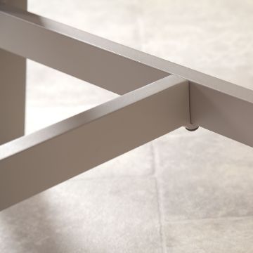 Enjoy the great outdoors with this Hopetown Outdoor Dining Collection. This set is made of high-quality powder-coated aluminum and textelene rope, ensuring that it is weatherproof. The cushions are five centimetres thick and come in a contemporary grey that matches with every décor. The cushions are soft and supportive to provide maximum relaxation. Best of all, they have zippers to make them easy to clean.