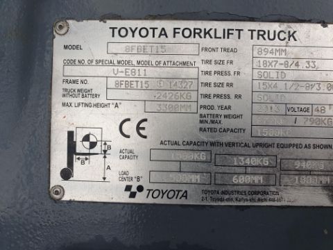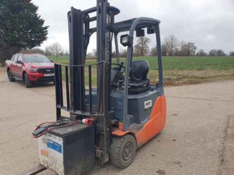 Toyota electric forklift, compact 3 wheeler.1500kg capacity..3300mm lift height. sideshift. Joystick control