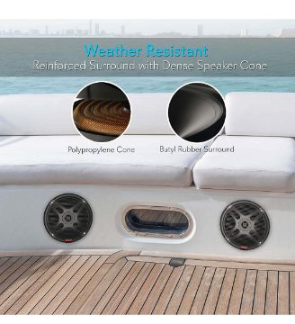 WEATHER RESISTANT: These are a set of weather resistant speaker made of rugged and durable materials. Has an engineered ABS housing construction, dual Polypropylene cone, cloth surround, Molded ABS Machined basket and grill to combat sun damage