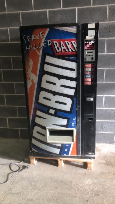 Drinks vending machine, this is from a company shop clearance, unsure on coins accepted,
