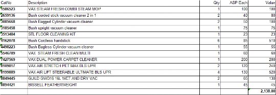 EAMA have received these directly from Argos so you can rest assured that nothing has ben removed from the pallets prior to listing them - EAMA have over 300 pallets in stock and therefore a pallet will be chosen at random from the homeware category.