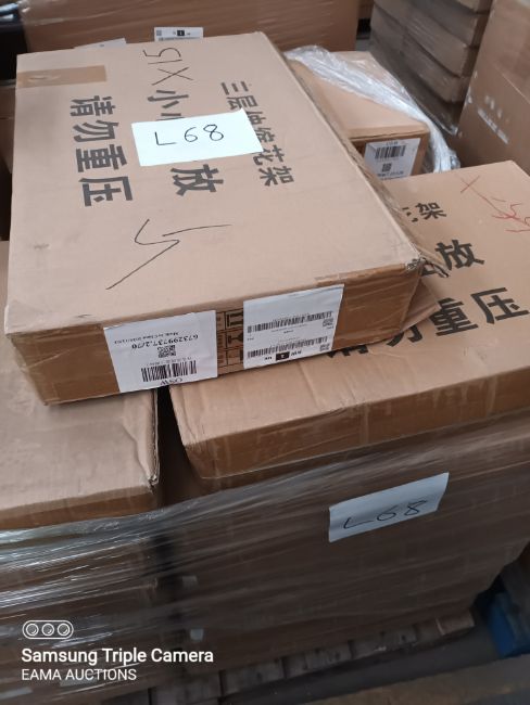 L68 - 1 PALLET CONTAINING APPROX 15 HOME AND GARDEN WOODEN PLANT POT SHELVES AND ALSO 29 METAL