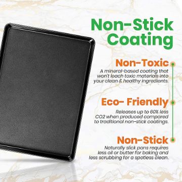 NON-STICK COATING: The large cooking sheet pan features a non-stick coated layer surface that ensures quick, effortless food release and eliminates the need for butter, oil, or cooking spray; Makes tasty homemade baked goods slide out easily