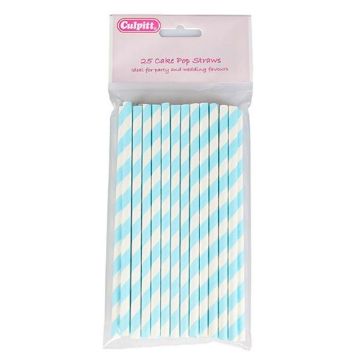 6" / 15cm white & light blue candy striped cake pop straws - pack of 25
