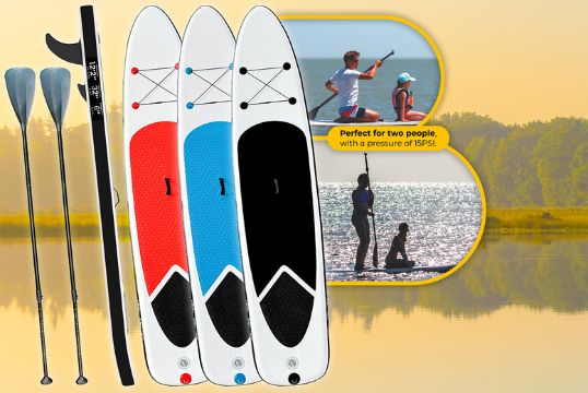 Easy to use: Features an adjustable, flexible paddle board for easy control and manoeuvrability.