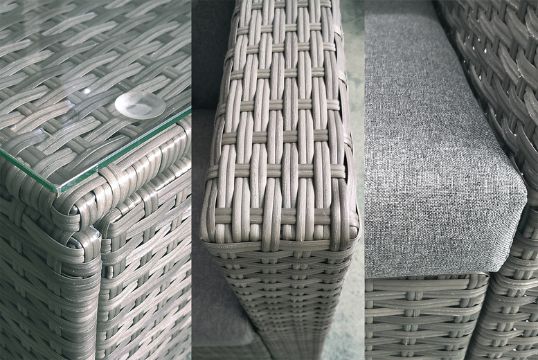 Made from a UV treated and weather-resistant polyrattan weave.