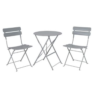 This Nimes 2 Seater Bistro Set in Grey is a modern high quality outdoor furniture set that will provide a traditional touch to any garden, courtyard, balcony or patio. This bistro set is made using sturdy steel materials and is light enough and foldable for easy storage and relocation as necessary.