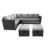 Includes an L-shaped corner sofa, two footstools and a coffee table with a toughened glass top.