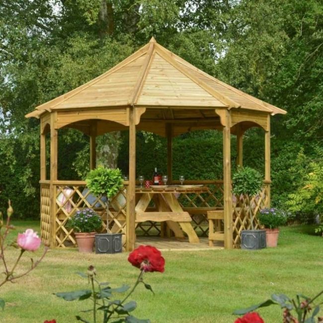 Made from a certified softwood, both the gazebo and the floor are pressure treated to ensure it remains protected against rot. This is a beautiful and durable garden structure that will make a great focal point in any garden.