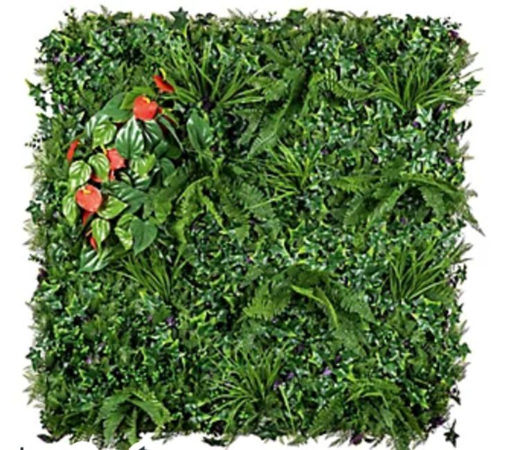 A carefully crafted 1x1m wall panel with an artificial floral design. Fully decorated with leaves and flowers, this is perfect for a statement piece indoors to bring the outside in, or perfect for the outdoors to create a decorative wall of easy to care foliage.
