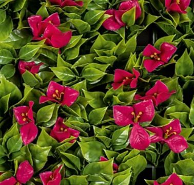 A carefully crafted 1x1m wall panel with an artificial floral design. Fully decorated with leaves and flowers, this is perfect for a statement piece indoors to bring the outside in, or perfect for the outdoors to create a decorative wall of easy to care foliage.