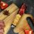 5 x Damascus 8 inch steel knives with coloured red resin handle - with sheaths