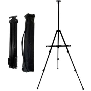 This Easels offer a highly extensive range of high-quality artist’s accessories, essential for all painting techniques. The Easel is metal and is 160cm in height. The canvas carrier can be adjusted for an optimal working height, and is fitted with a canvas clamp for extra canvas stability. The item is Easy to fold away and store.