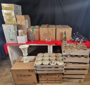 GLASSWARE - ALL ITEMS ARE BRANDED PREMIER ALL BOXES AND ITEMS ARE APPROXIMATE - WHAT YOU SEE IN THE PHOTO IS WHAT YOU RECEIVE.