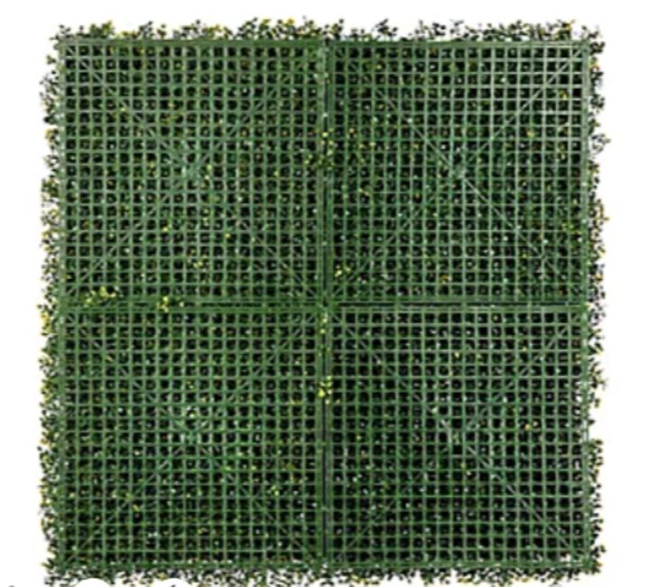 A carefully crafted 1x1m wall panel with an artificial plant design. This boxwood design panel is perfect for a statement piece indoors to bring the outside in, or perfect for the outdoors to create a decorative wall of easy to care foliage.