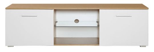 BRAND NEW boxed 160CM has WHITE Gloss fronts ON OAK wood effect frame TV STAND (TV32)