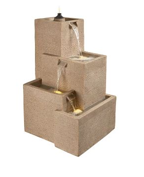 This beautiful cascading water feature with oil candle and LEDs built in will create a calming ambience for any home or garden.