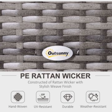 • Makes those special times spent with friends in your garden better than ever before, thanks to this five-piece garden sofa set from Outsunny. Using hand-woven PE rattan. Curved in shape for a more intimate and cosy feeling, each seat of the conservatory furniture is with a thick foam seat cushion with a washable cover to ensure you can lounge comfortably, with back cushions for support. Finished with legs for balance and a matching coffee table. Effortless style whilst you sit under the sun.