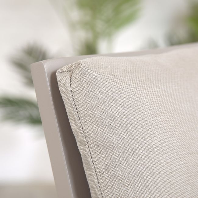 Enjoy the great outdoors with this Hopetown Outdoor Dining Collection. This set is made of high-quality powder-coated aluminum and textelene rope, ensuring that it is weatherproof. The cushions are five centimetres thick and come in a contemporary grey that matches with every décor. The cushions are soft and supportive to provide maximum relaxation. Best of all, they have zippers to make them easy to clean.
