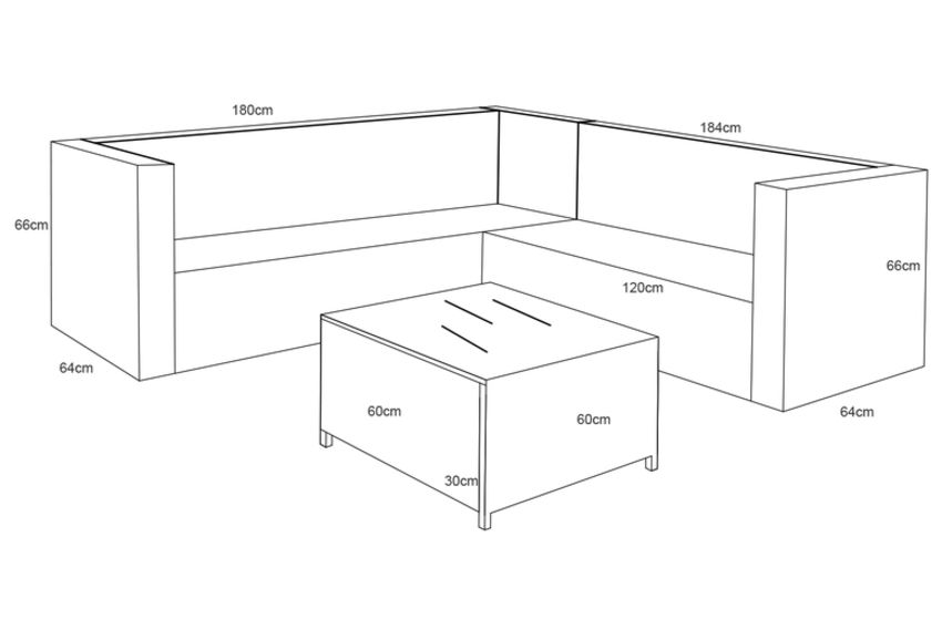 Coffee table: D 60cm x W 60cm x H 30cm