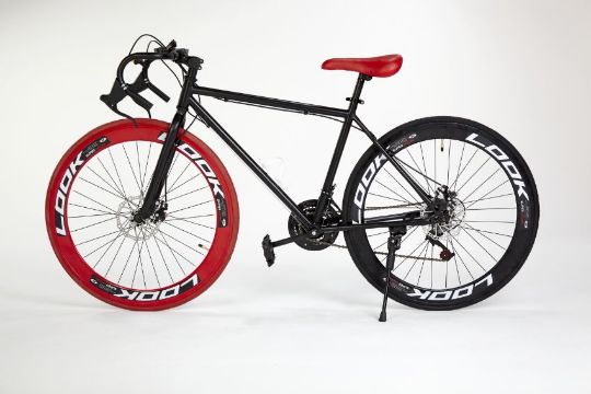 RED/BLACK STREET BIKE WITH 21 GREAR, BRAKE DISKS, KICK STAND, COOL THIN TYRES