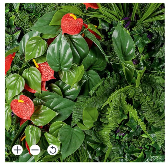 A carefully crafted 1x1m wall panel with an artificial floral design. Fully decorated with leaves and flowers, this is perfect for a statement piece indoors to bring the outside in, or perfect for the outdoors to create a decorative wall of easy to care foliage.