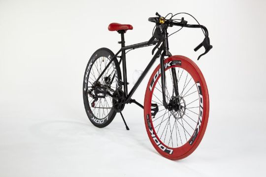RED/BLACK STREET BIKE WITH 21 GREAR, BRAKE DISKS, KICK STAND, COOL THIN TYRES