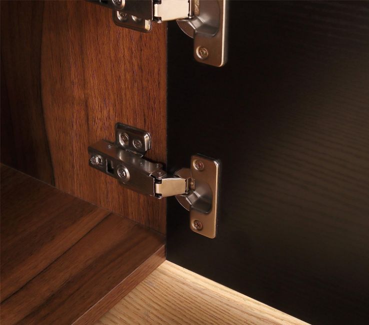 - Contemporary modern high gloss finish doors with silver metal handles and pneumatic hinges.