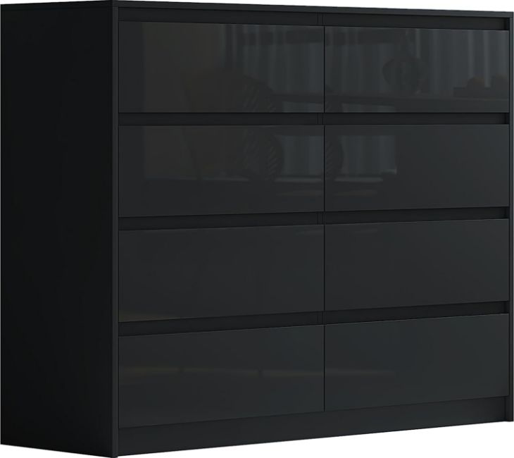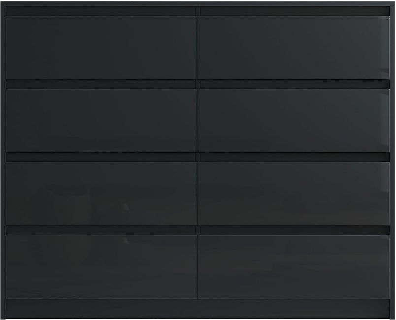 This 8 drawer Handleless chest is an excellent addition to our high gloss bedroom furniture range of Sleek and Stylish furniture. The 8 sturdy individual drawers are in 2 columns of 4. They can take a remarkable amount of weight due to the high strength manufactured wood veneer frame. The drawers fit flush and are manufactured to strict conditions which mean they are stable and firm. With its clean simple design and rich high gloss finish to the drawer fronts, this chest will blend in seamlessly with any modern or traditional bedroom. Manufactured from high grade chipboard with an authentic wood/matt effect finish to the carcass and luxury high gloss fronts (drawers). Available in Black, White and Grey Colours (Select from colour options above) Features High gloss finish to drawer fronts Metal drawer runners Handleless. Easy self-assembly