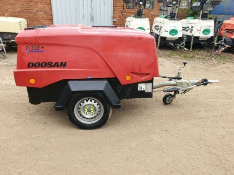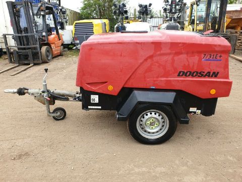 DOOSAN INGERSOLL RAND 7/31E DIESEL PORTABLE AIR COMPRESSOR WITH 110V GENERATOR.
