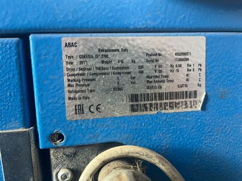 2017 ABAC GENESIS INSTANT AIR SCREW TYPE WORKSHOP COMPRESSOR