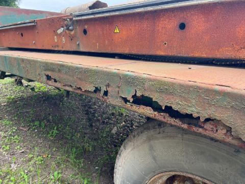26 FOOT LONG TANDEM AXLE HIGH SPEED BALE FLAT TRAILER AIR AND HYDRAULIC BRAKES BUT UNTESTED AS NOT BEEN PLUGGED ONTO A TRACTOR SOLID STEEL FLOOR SPRUNG DRAWBAR , DOES NEED ATTENTION AS A COUPLE OF LEAF SPRINGS SNAPPED SINGLE LEAF SUSPENSION ON BOTH HIGH SPEED AXLES 10 STUD SUPER SINGLE WHEELS AND TYRES REAR LIGHTS UNTESTED |