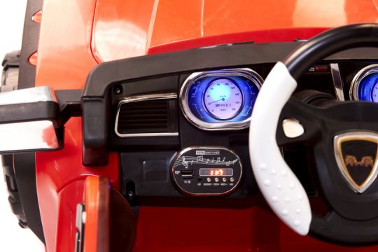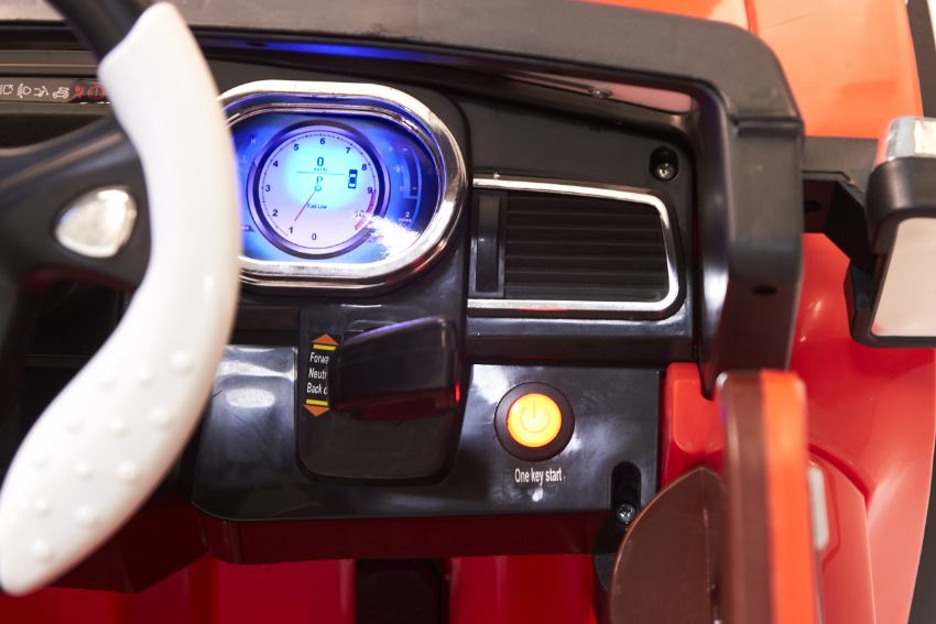 Working lights, aux/music/story player, rocking mode, remote for parental control, doors open, 4 x Shock Absorbers
