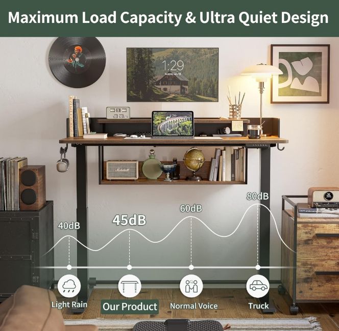 • Memory Preset: Easily adjust standing desk with lower noise (under 55 dB) while running. Save your favorite 3 settings and smoothly switch between them