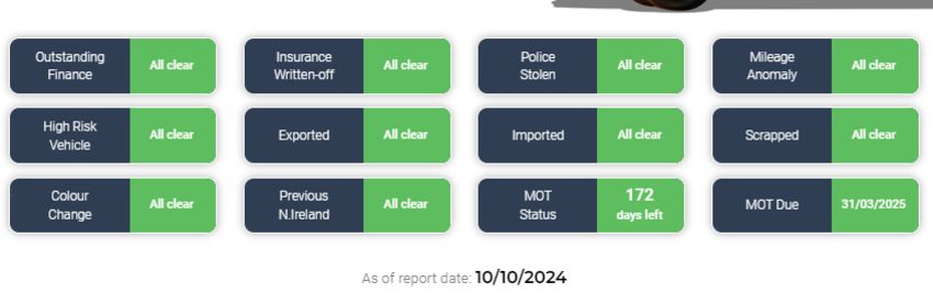 As of report date {10/10/2024} HPI report is all clear - See image!