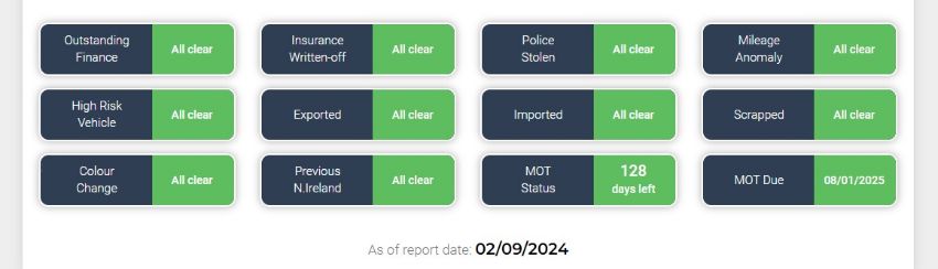 As of report date {2/09/2024} HPI report is all clear - See image!