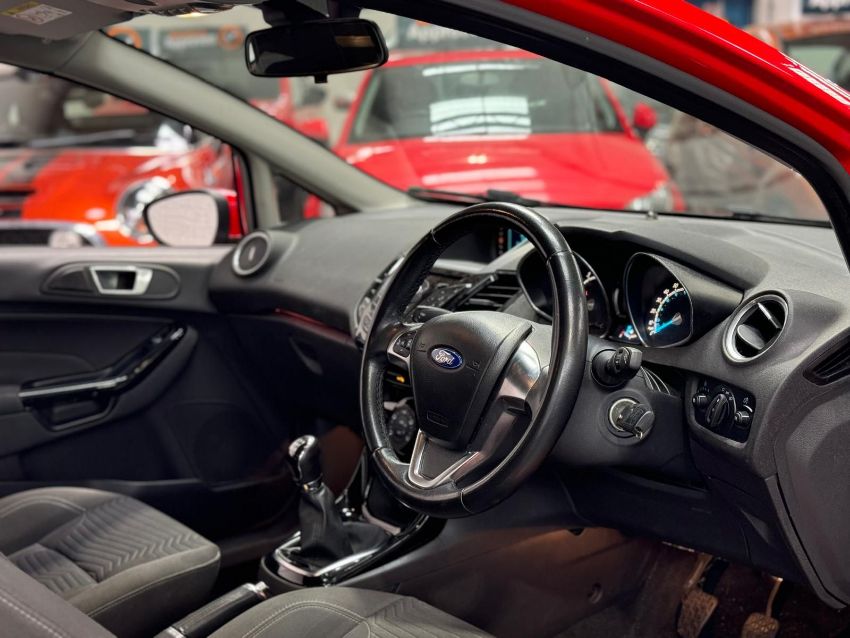 The 2015 Ford Fiesta Zetec Turbo is a compact yet powerful hatchback that’s perfect for both city commuting and weekend getaways. Its turbocharged engine delivers great performance while remaining fuel-efficient. With a stylish red finish and a well-maintained interior, this car is sure to turn heads. With only 1 previous owner and a solid maintenance record, it’s ready to hit the road with confidence.