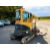 The 2016 Hyundai R25Z-9AK excavator is equipped with a Kubota engine and features hammer piping, site beacons, and a heated cab with a radio for operator comfort. It comes with a hydraulic quick hitch and 3 buckets, making it ready for various digging and material handling tasks.