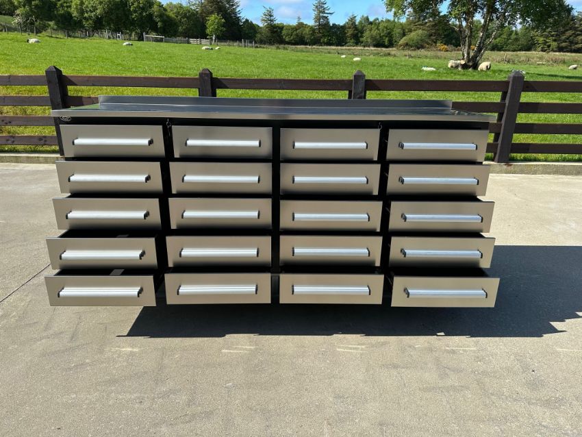 Brand New Unused Stainless Steel 7ft Work Bench with 20 Drawers